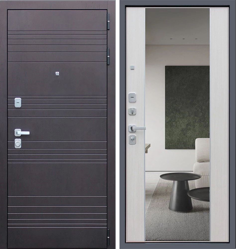 Надежная входная Дверь Дуэт с зеркалом премиум класса по цене 48 053 руб. Большая толщина стали защитит от проникновения в ваш дом, квартиру или коттедж. Используется очень качественная фурнитура: замки, цилиндры, ручки, защелки. Покрытие и отделка двери изготовлено под внимательным контролем производителя. Дверь имеет долгий срок службы и гарантию.